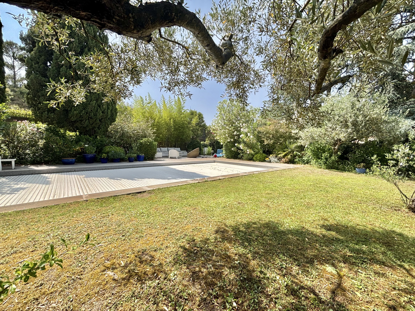 Vous y trouverez également une salle de bains et une salle d’eau. Le jardin paysager, la grande terrasse et la piscine offrent un espace extérieur soigné, propice à la détente.