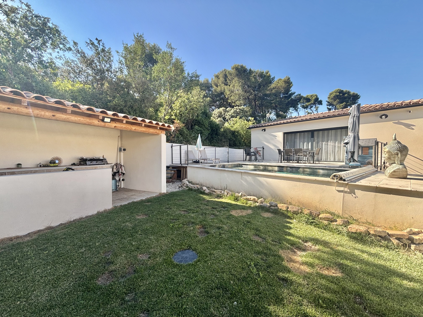 Dans un environnement calme et recherché, sur les hauteurs de Beaucaire, découvrez cette belle villa de plain-pied, en excellent état, d’environ 120 m² habitables, édifiée sur une parcelle de 646 m². Elle offre une vaste pièce de vie lumineuse, d’environ 60 m², comprenant une cuisine moderne et entièrement équipée. Une buanderie attenante à la cuisine complète cet espace de vie. La partie nuit se compose de trois chambres, d’une salle d’eau contemporaine avec douche à l’italienne, et d’un dressing. Le confort thermique est assuré toute l’année grâce à un système de chauffage gainable réversible. À l’extérieur, le jardin paysager, bien entretenu, propose un espace agréable avec une piscine parfaitement intégrée. Un garage est également attenant.